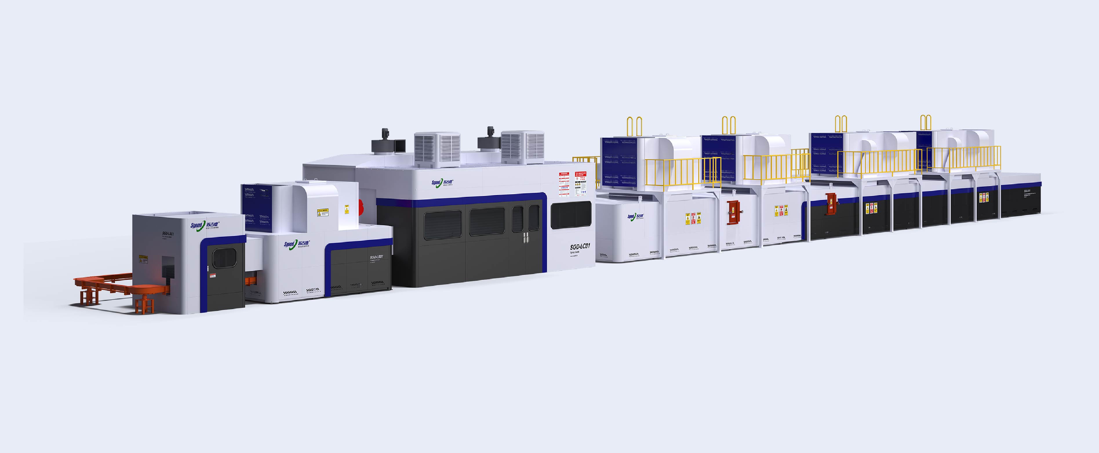 dedusting cabinet, a preheating furnace, a paint spraying room, Three-stage waste heat