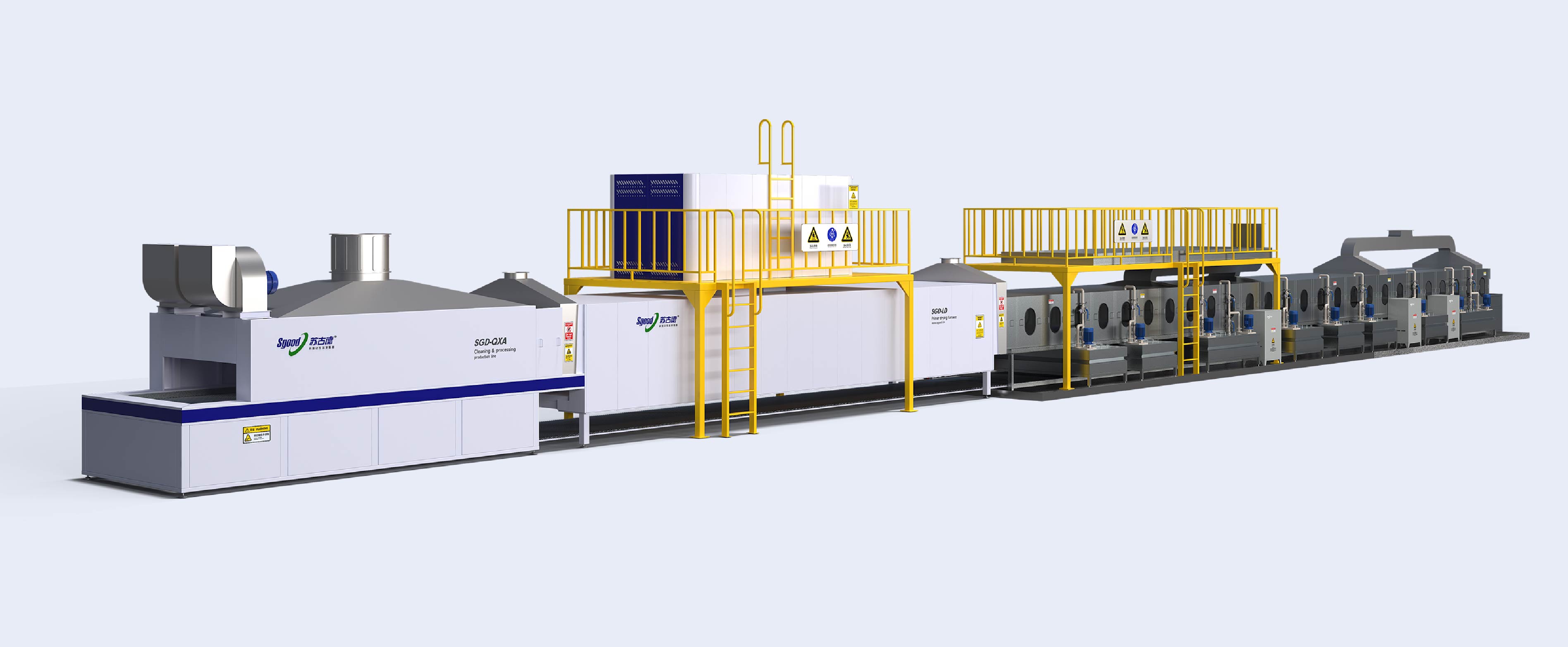 In the spraying process, the oil stain and dust on the surface of the workpiece need to be pretreated. The stainless steel cleaning line cleans the oil stain and dust on the surface of the workpiece by water washing. After cleaning, the workpiece surface is dried and cooled by the freezing furnace.